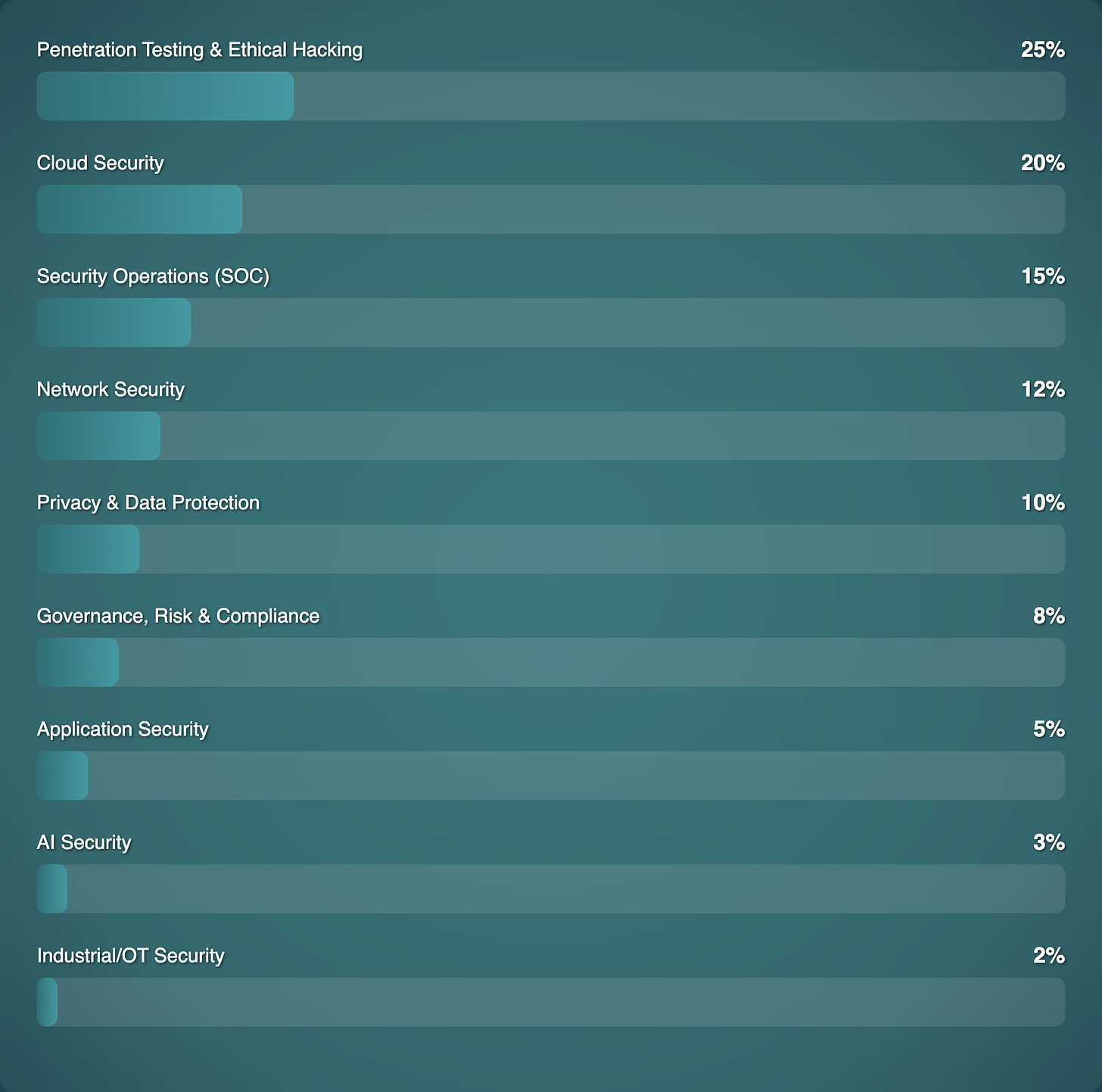 Penetration Testing & Ethical Hacking: 25%
